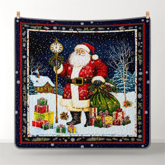 Pajabear Quilt 3-Piece Set Cozy Santa Claus With Reindeer Pulling His Sleigh Full Of Gifts