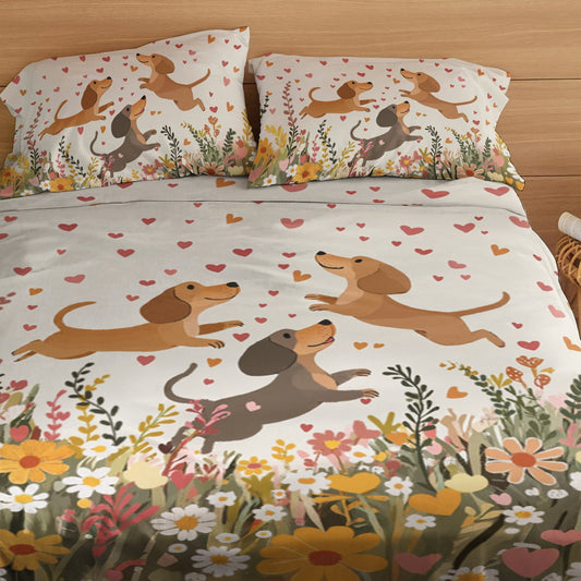 Pajabear 4-Piece Bed Sheet Set Dachshund Friends