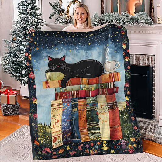 Pajabear Fleece Blanket Book Nook Cats Reading