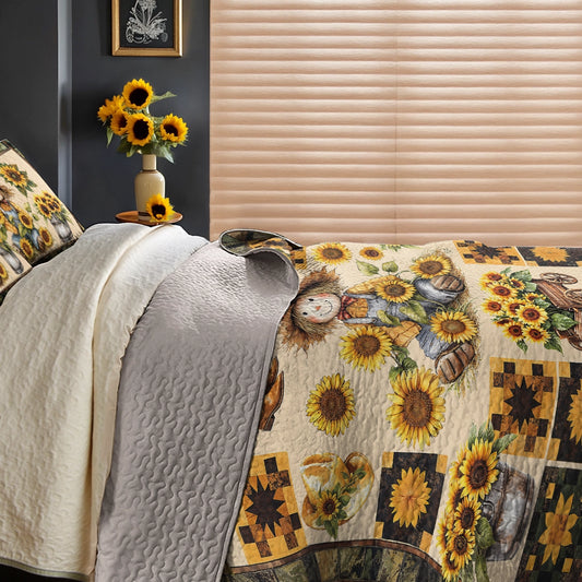 Pajabear Quilt 3-Piece Set Peaceful Farmhouse Sunflower