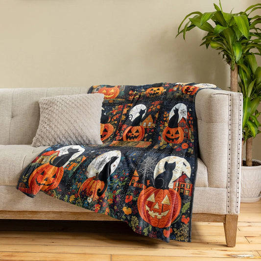 Pajabear All Season Quilt 3-Piece Set Black Cat Pumpkins Fall Love Peace Halloween Collection