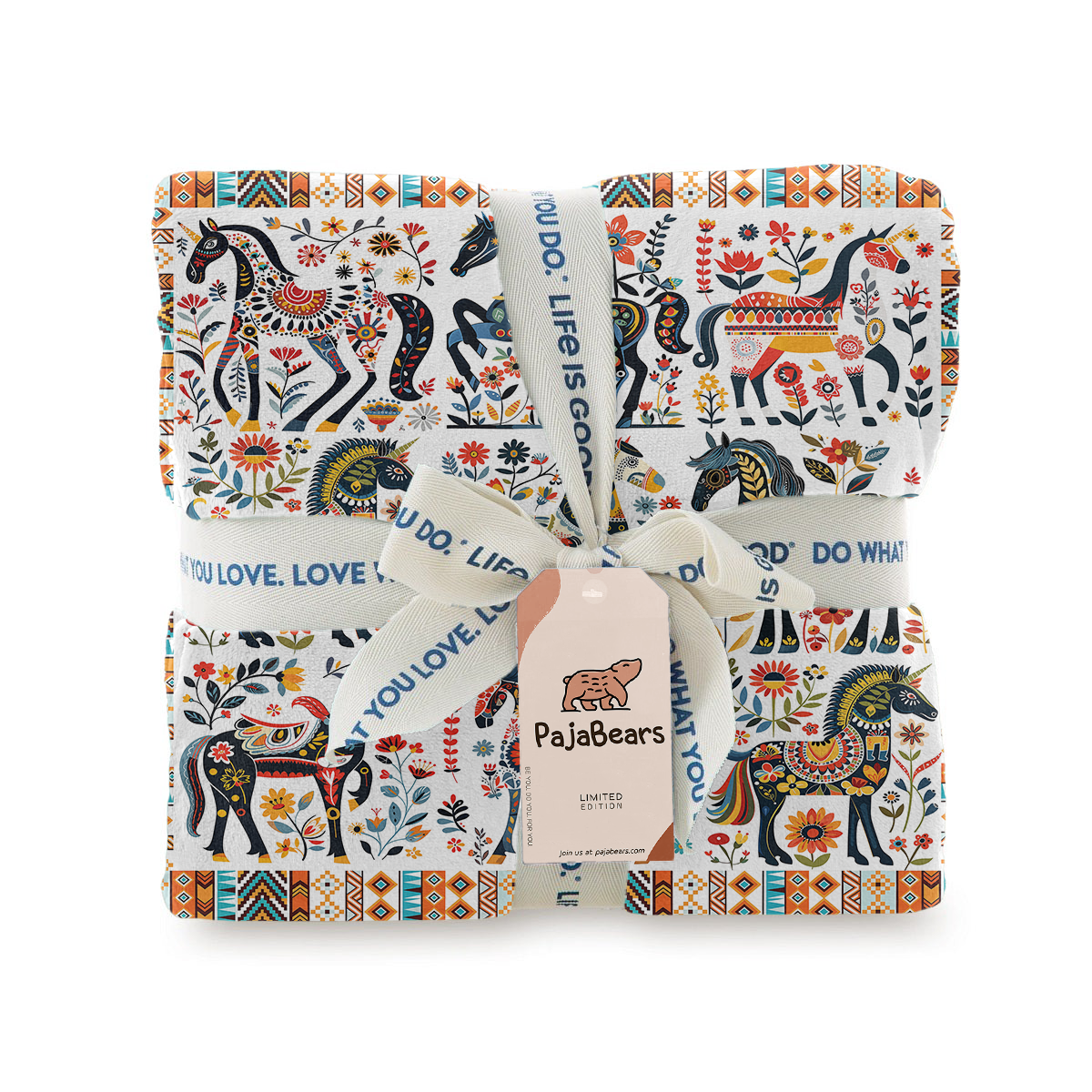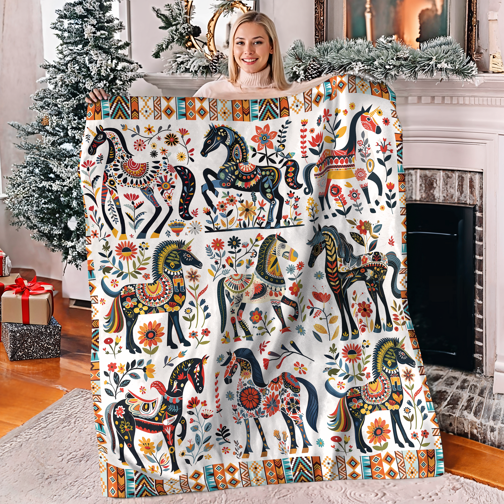 Pajabear Fleece Blanket Horse Floral Pattern