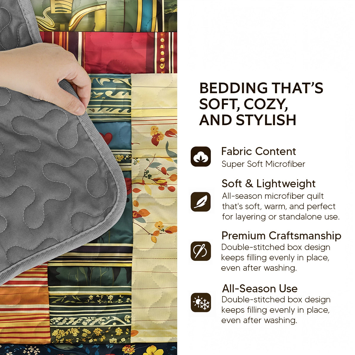 All-Season Comfort: Designed for year-round use, this quilt set offers the perfect balance of warmth and lightness. With a heavier-than-average microfiber filling wrapped in a polyester shell, it provides just the right amount of weight—keeping you cool on warm summer nights and offering cozy warmth during chilly winter evenings