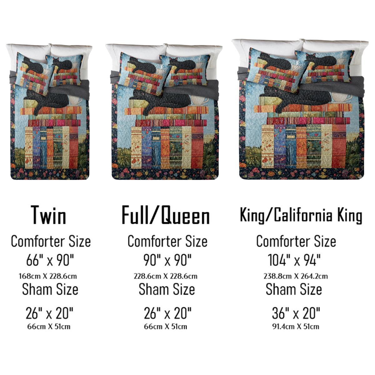 Pajabear Quilt 3-Piece Set Book Nook Cats Reading