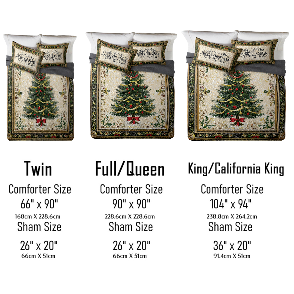 Full/Queen: 90" x 90"(2 pillowcases 26" x 20")