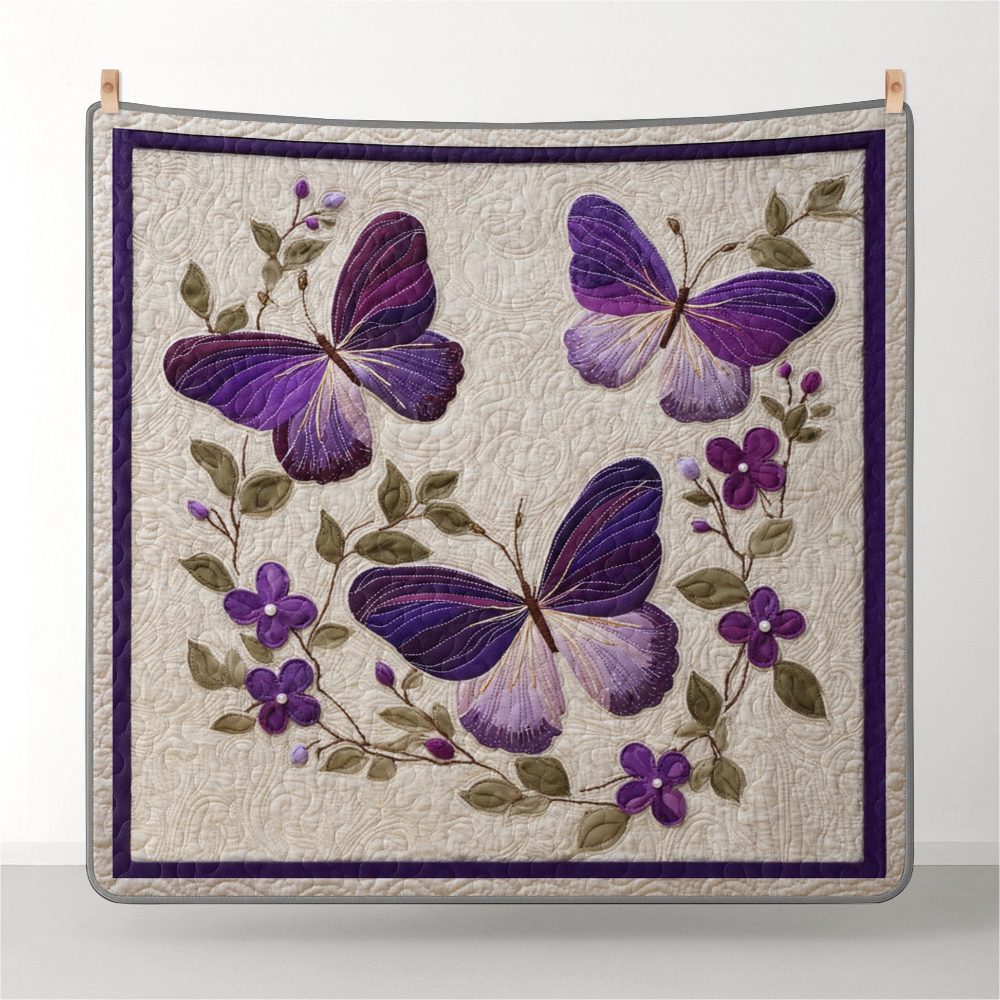 This design features vibrant purple butterflies surrounded by soft blossoms and delicate leaves — creating a scene filled with lightness, beauty, and gentle charm.