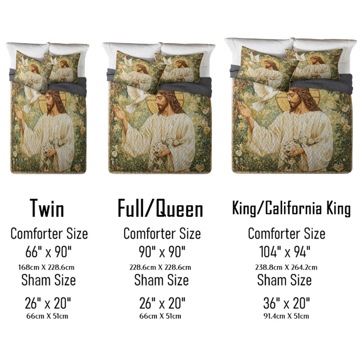 Full/Queen: 90" x 90"(2 pillowcases 26" x 20")