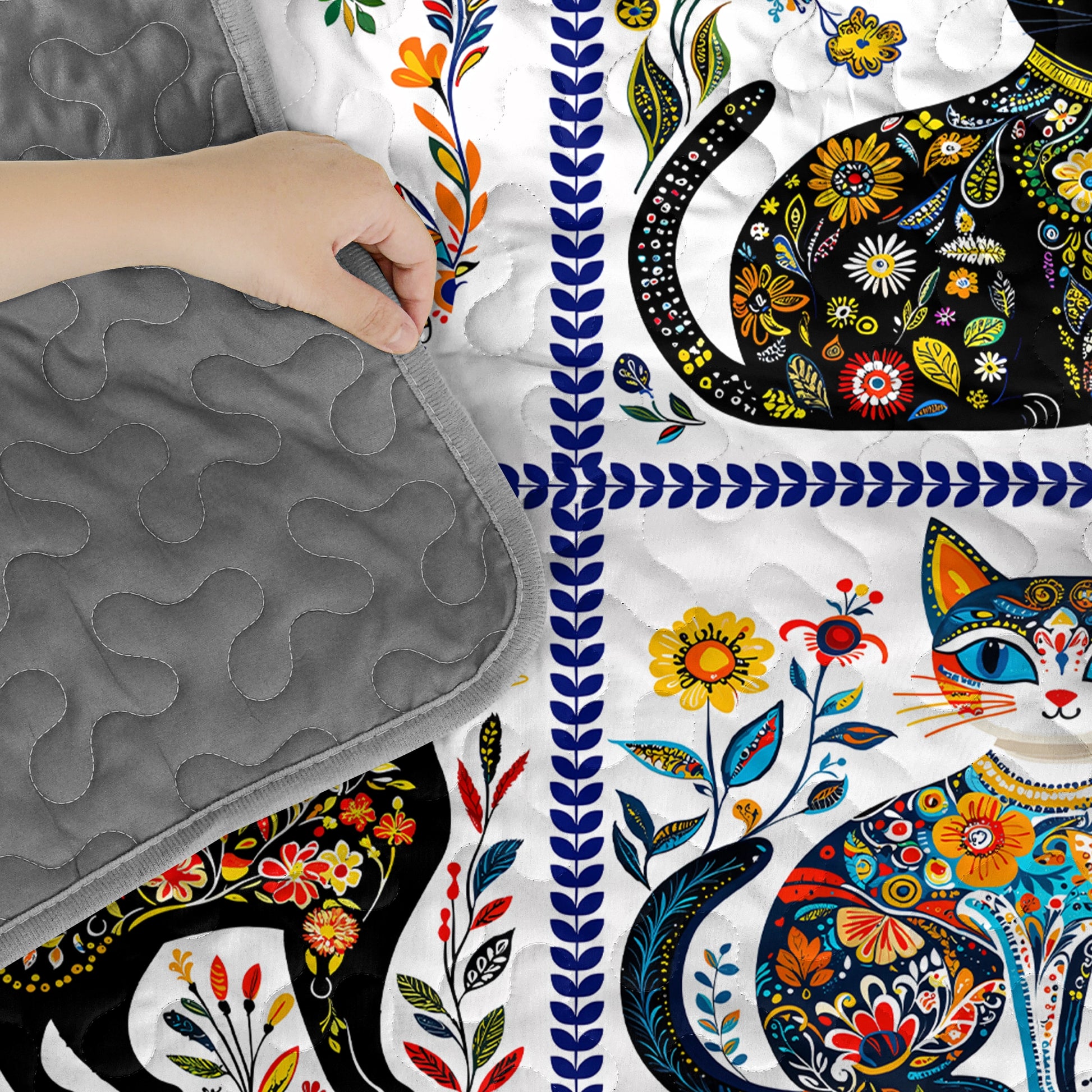 Pajabear Quilt 3-Piece Set Folk Art Feline