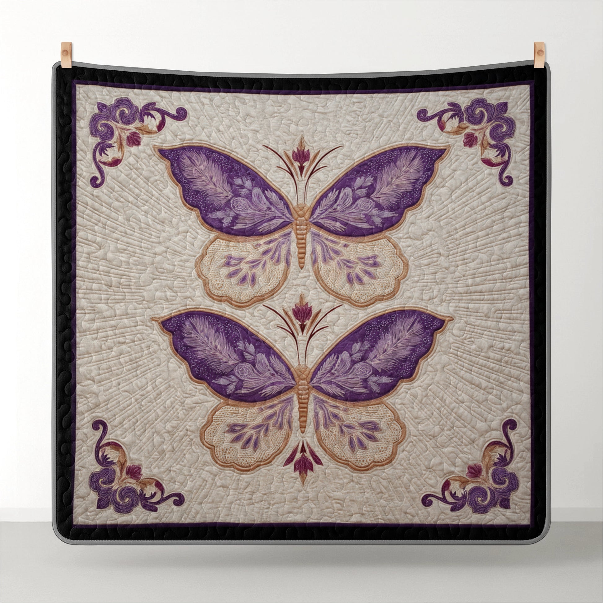 This design features two beautifully detailed butterflies framed by delicate floral accents and ornate corner motifs — a harmonious blend of refined artistry and peaceful color.