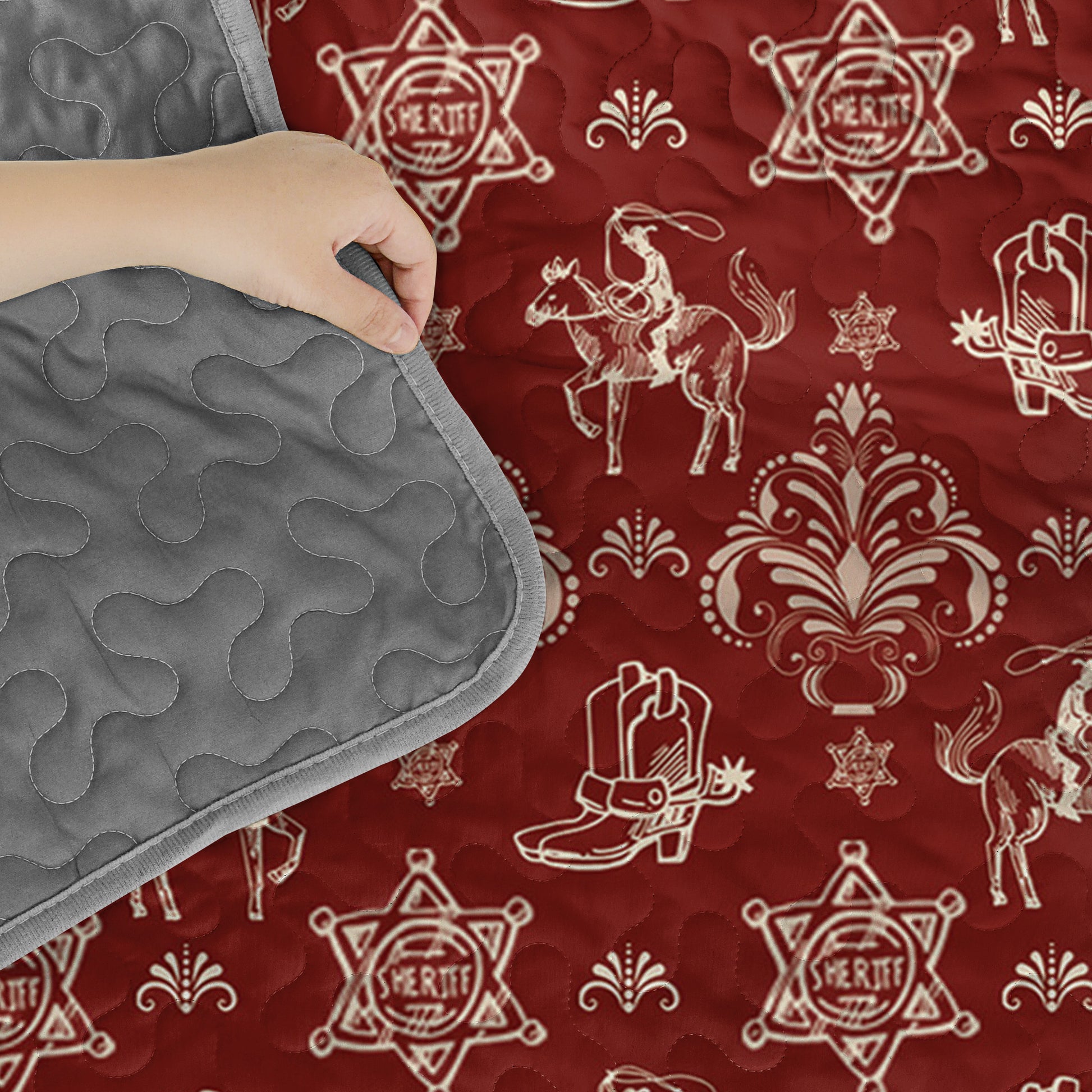 Bring the bold spirit of the Wild West into your home with this deep red Rodeo Rouge quilt set. Featuring classic cowboy motifs and sheriff stars, it adds rustic charm and character to your bedroom. Made from ultra-soft, breathable microfiber for lasting comfort all year round. Lightweight yet cozy—perfect for layering or using on its own. Machine washable and crafted to stay beautiful for years to come.