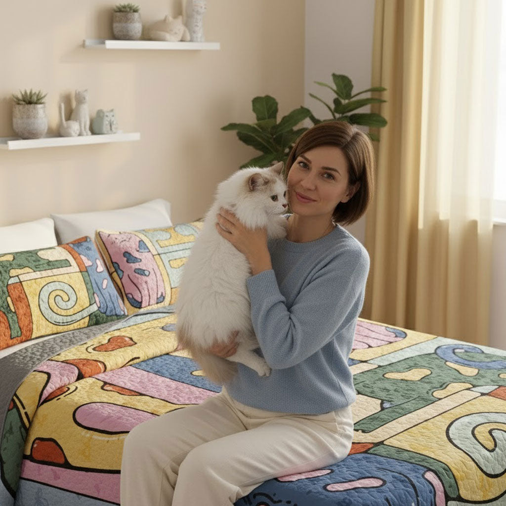 Pajabear Quilt 3-Piece Set Whimsical Cats