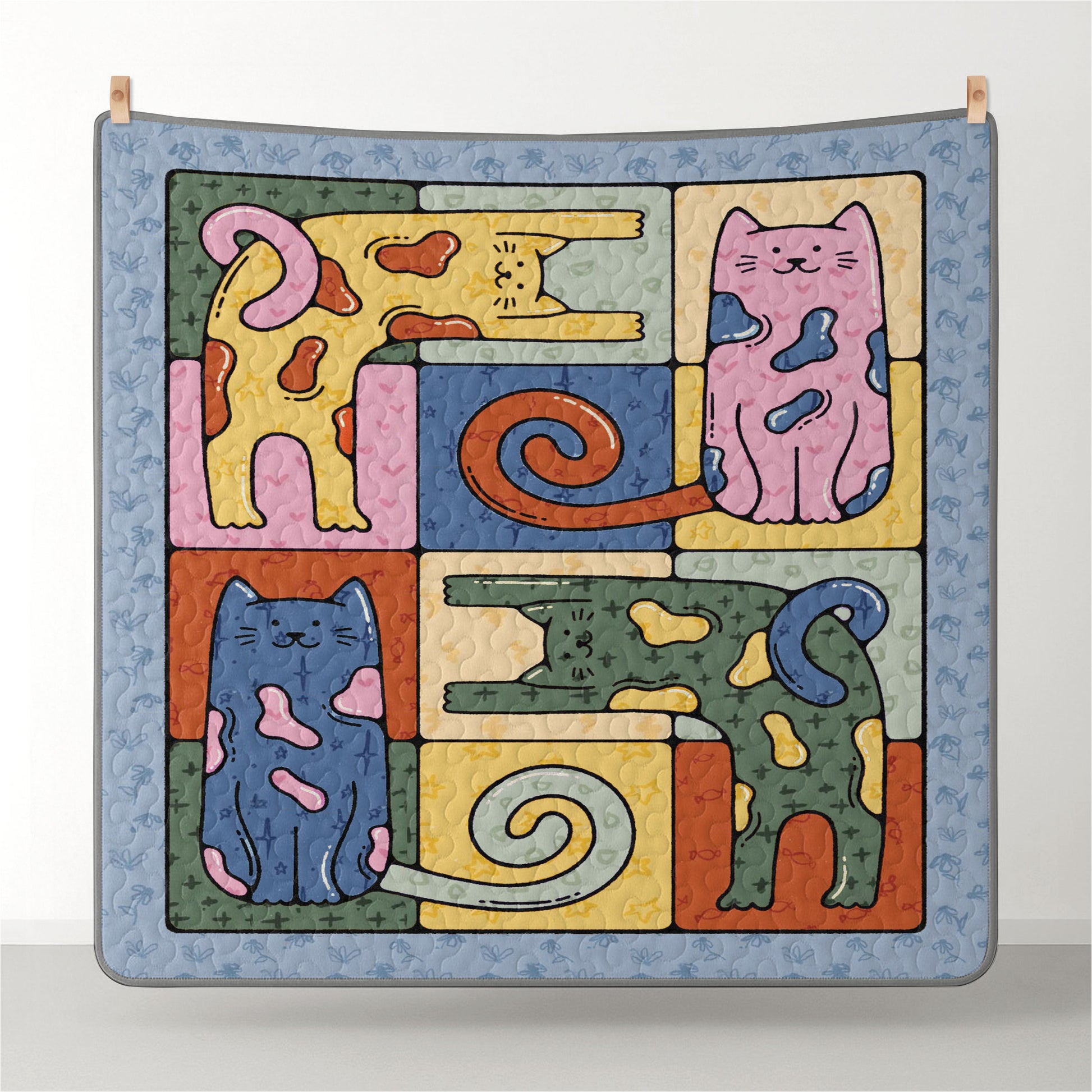 Inspired by the joy of cozy days and the sweet company of cats, this design features a delightful patchwork of colorful kitties — each one stretching, curling, and smiling in its own adorable way. The fun geometric layout and hand-drawn style make it feel like a piece of modern art made for dreamers and cat lovers alike.