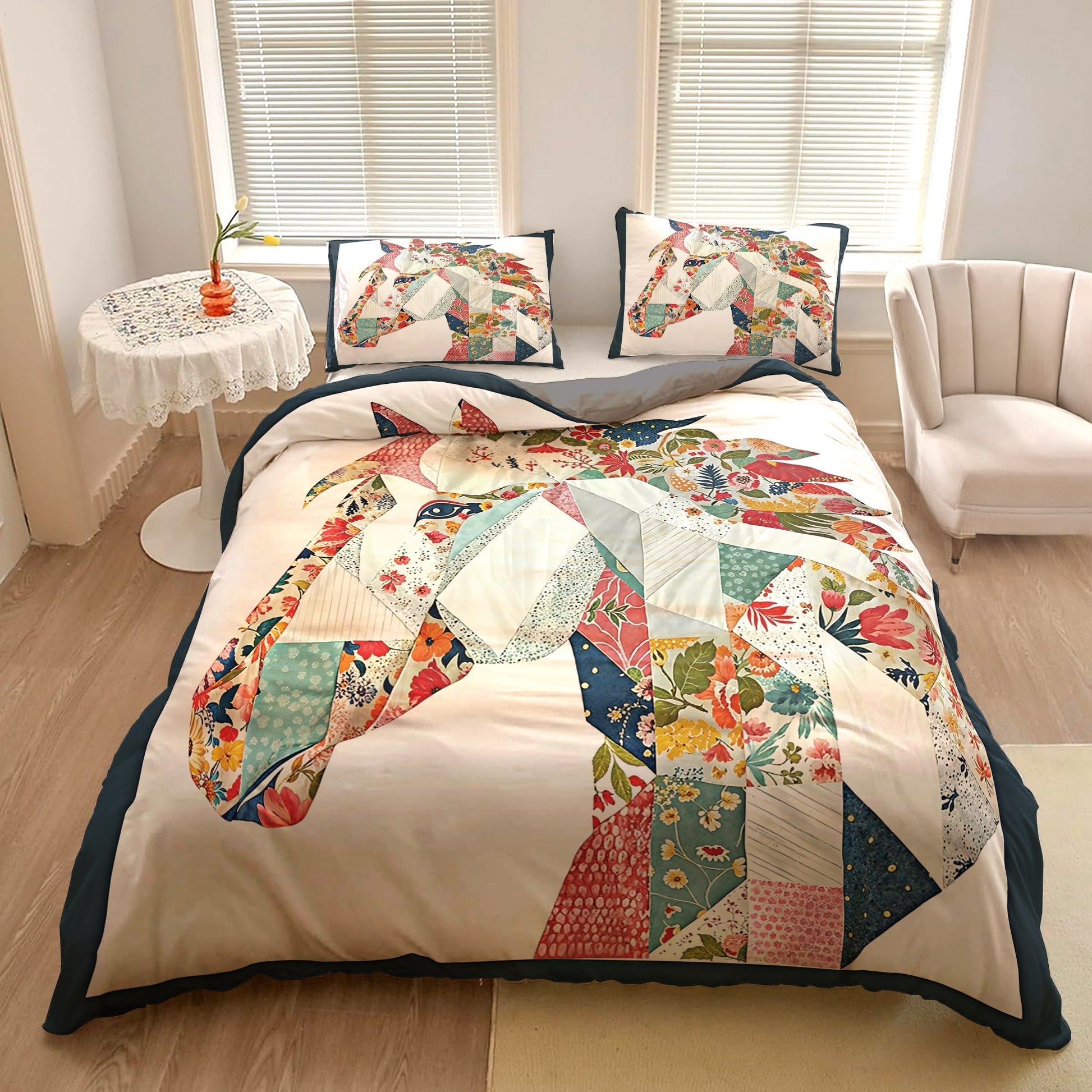 Pajabear 3 Pieces Duvet Cover Set - Charming Floral Horse