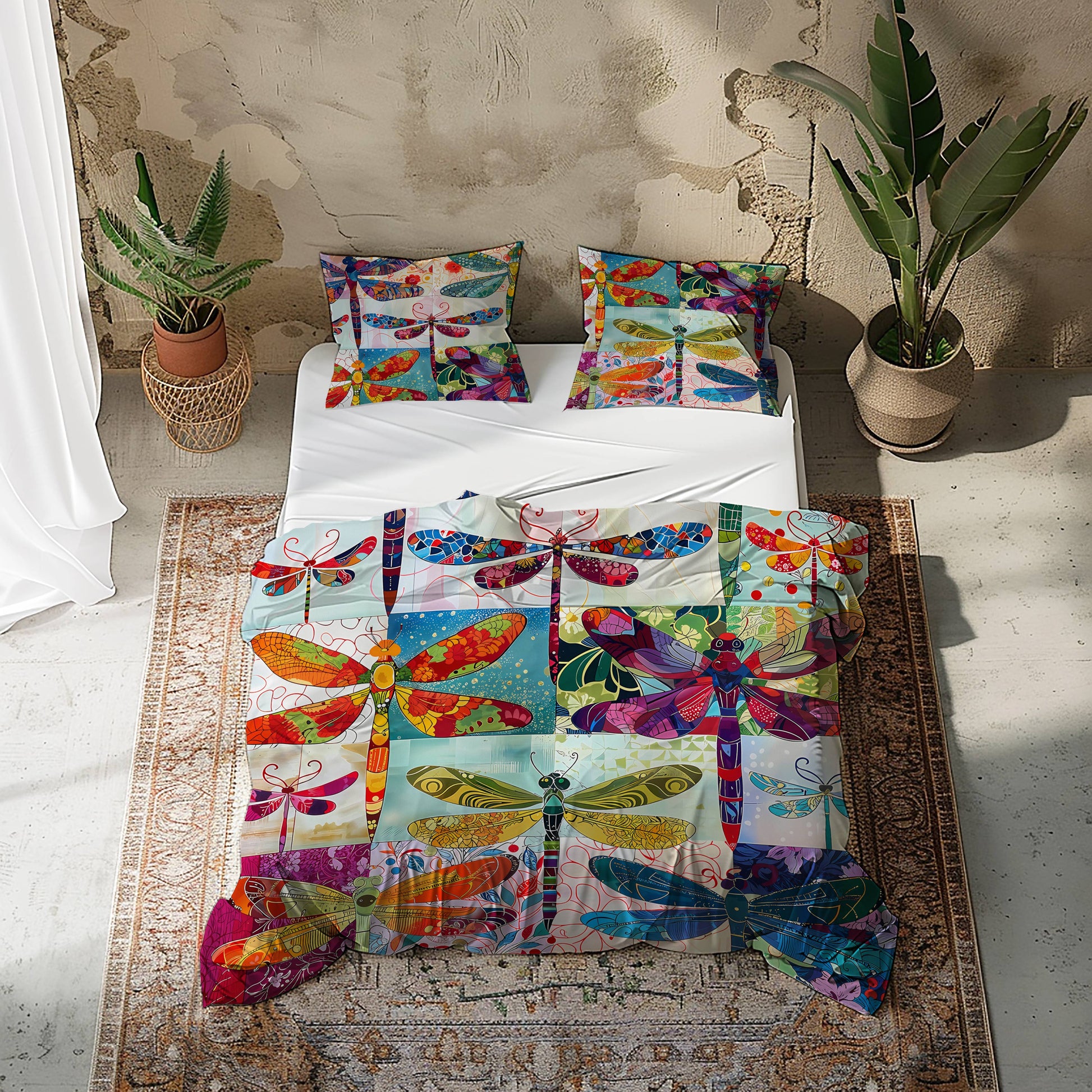 Pajabear 3 Pieces Duvet Cover Set Dragonfly Harmony
