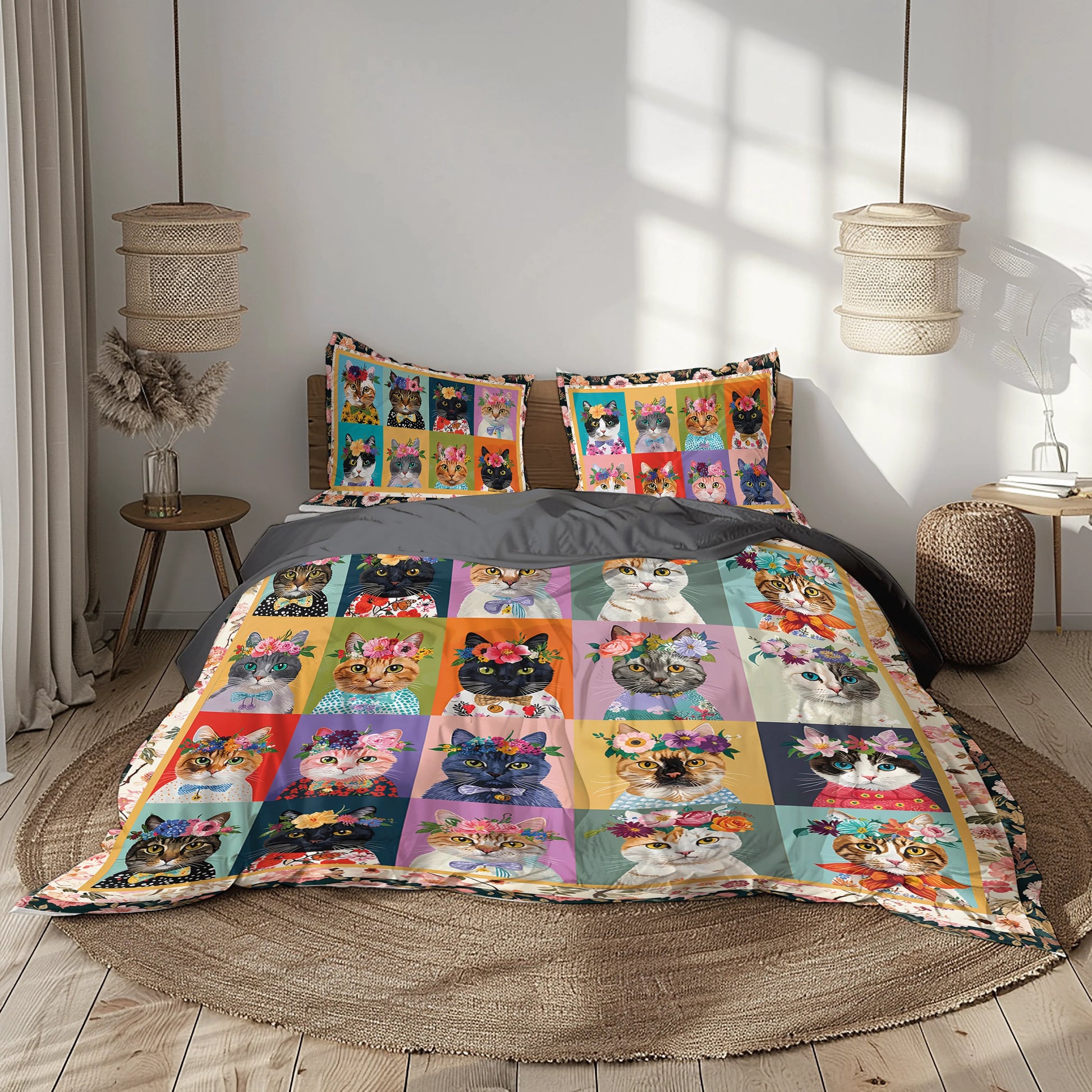 Pajabear 3 Pieces Duvet Cover Set Floral Cat Fantasy