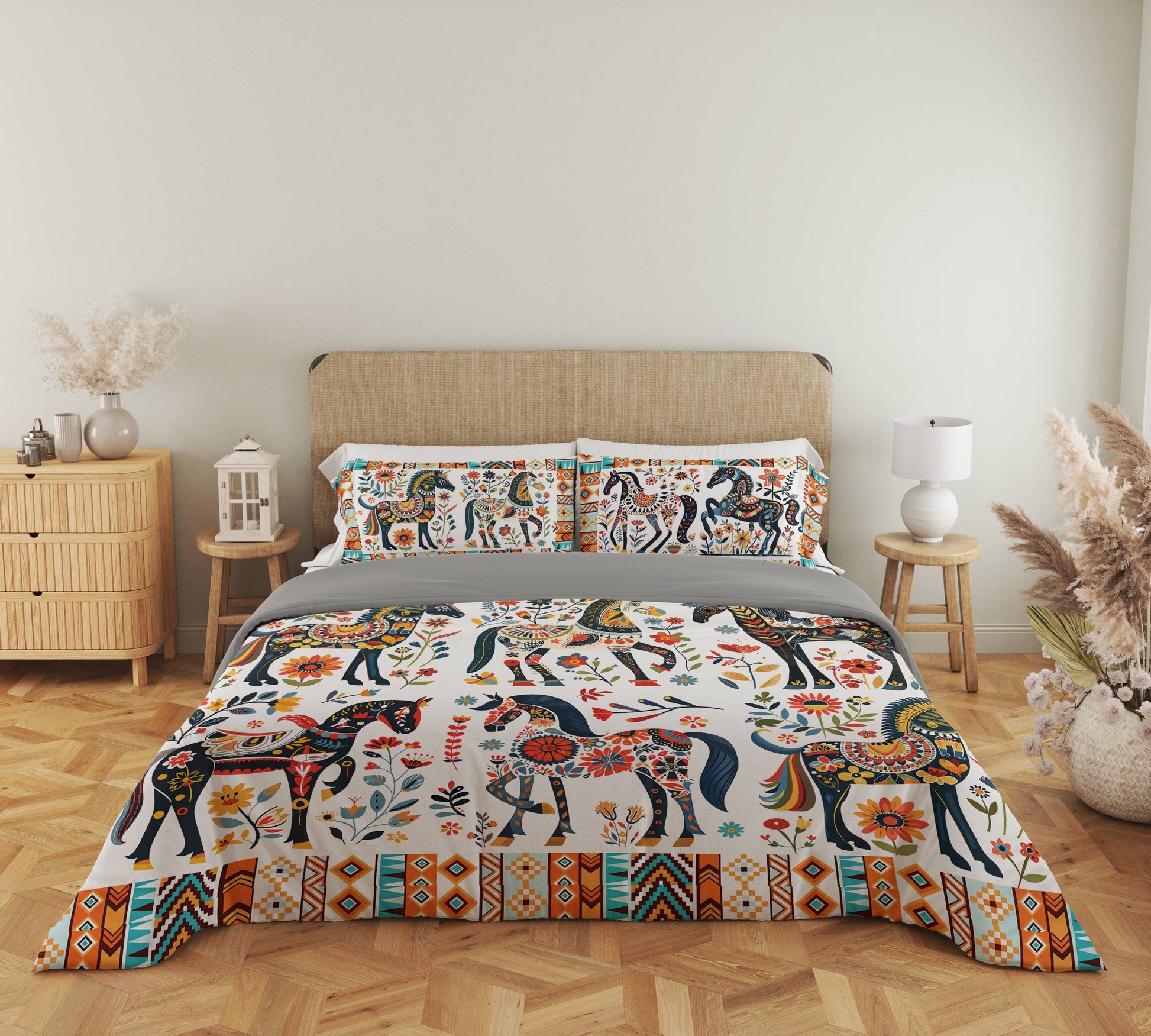 Pajabear 3 Pieces Duvet Cover Set Horse Floral Pattern