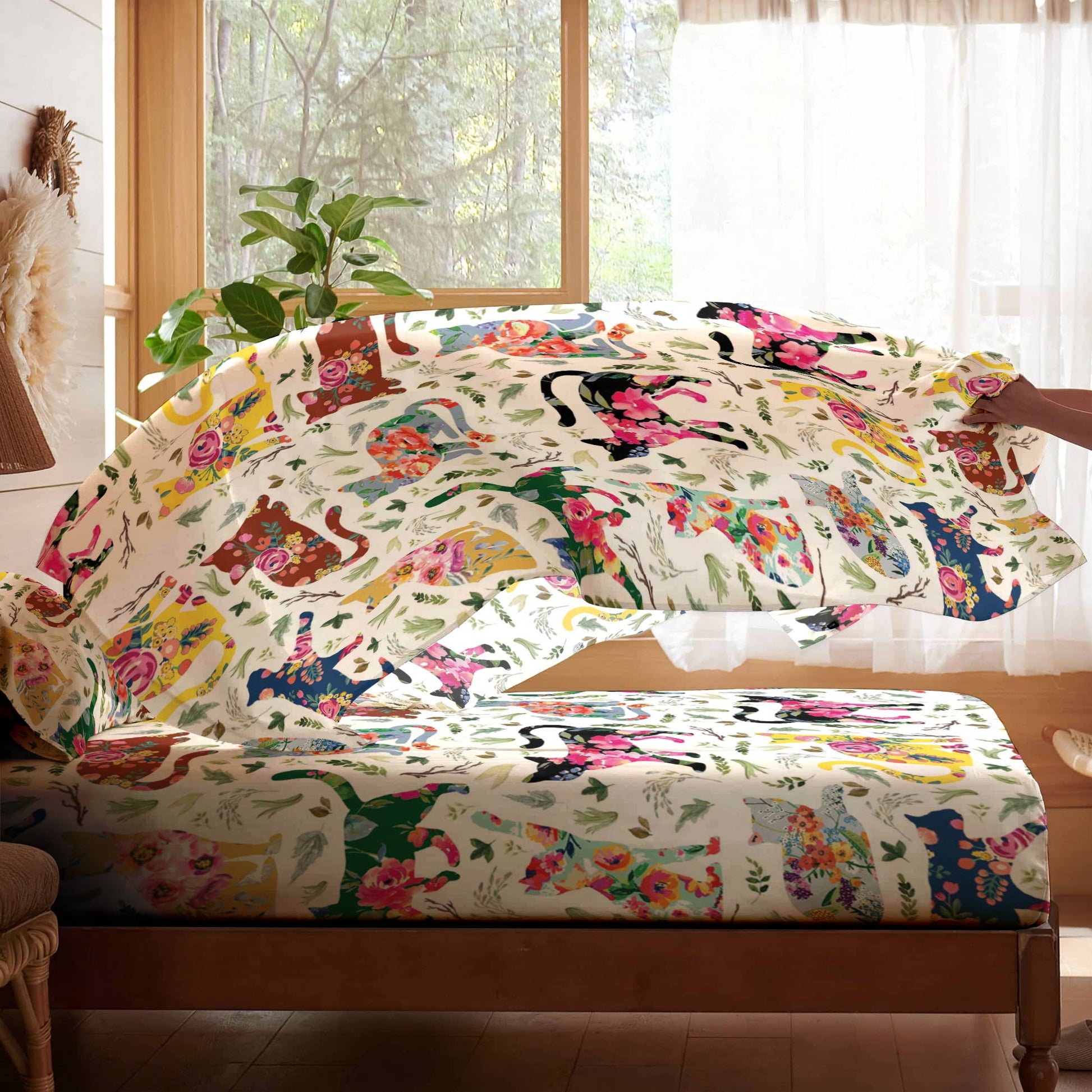 Pajabear 4-Piece Bed Sheet Set Cat Flower