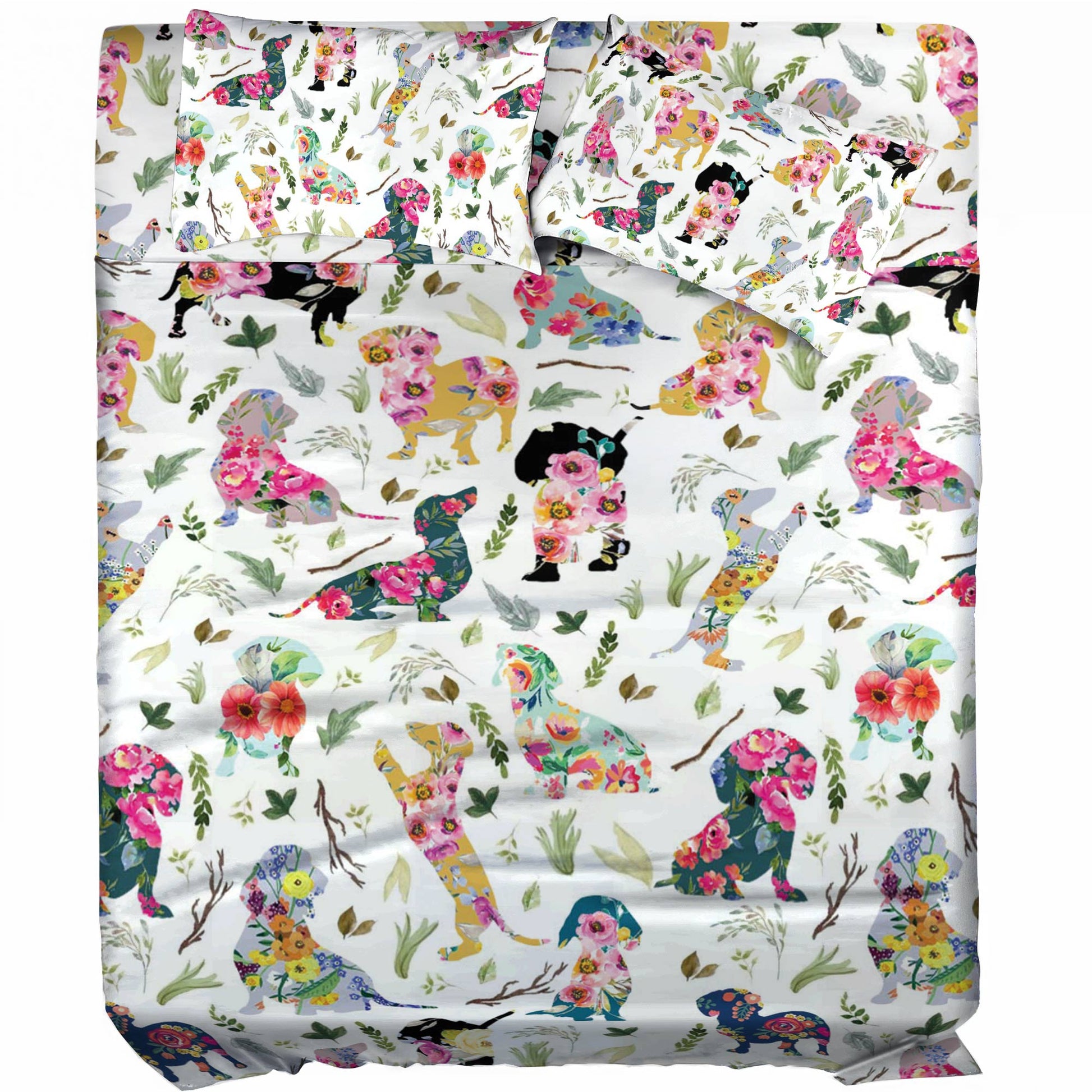 Pajabear 4-Piece Bed Sheet Set Dachshund Flower