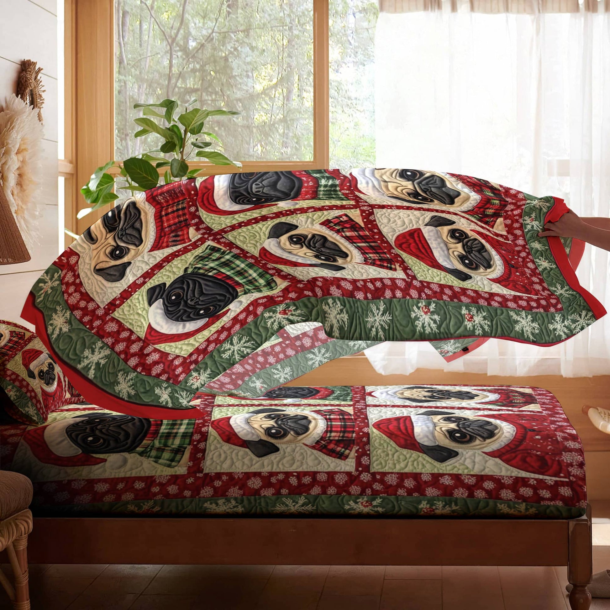 Pajabear 4-Piece Bed Sheet Set Festive Pugs